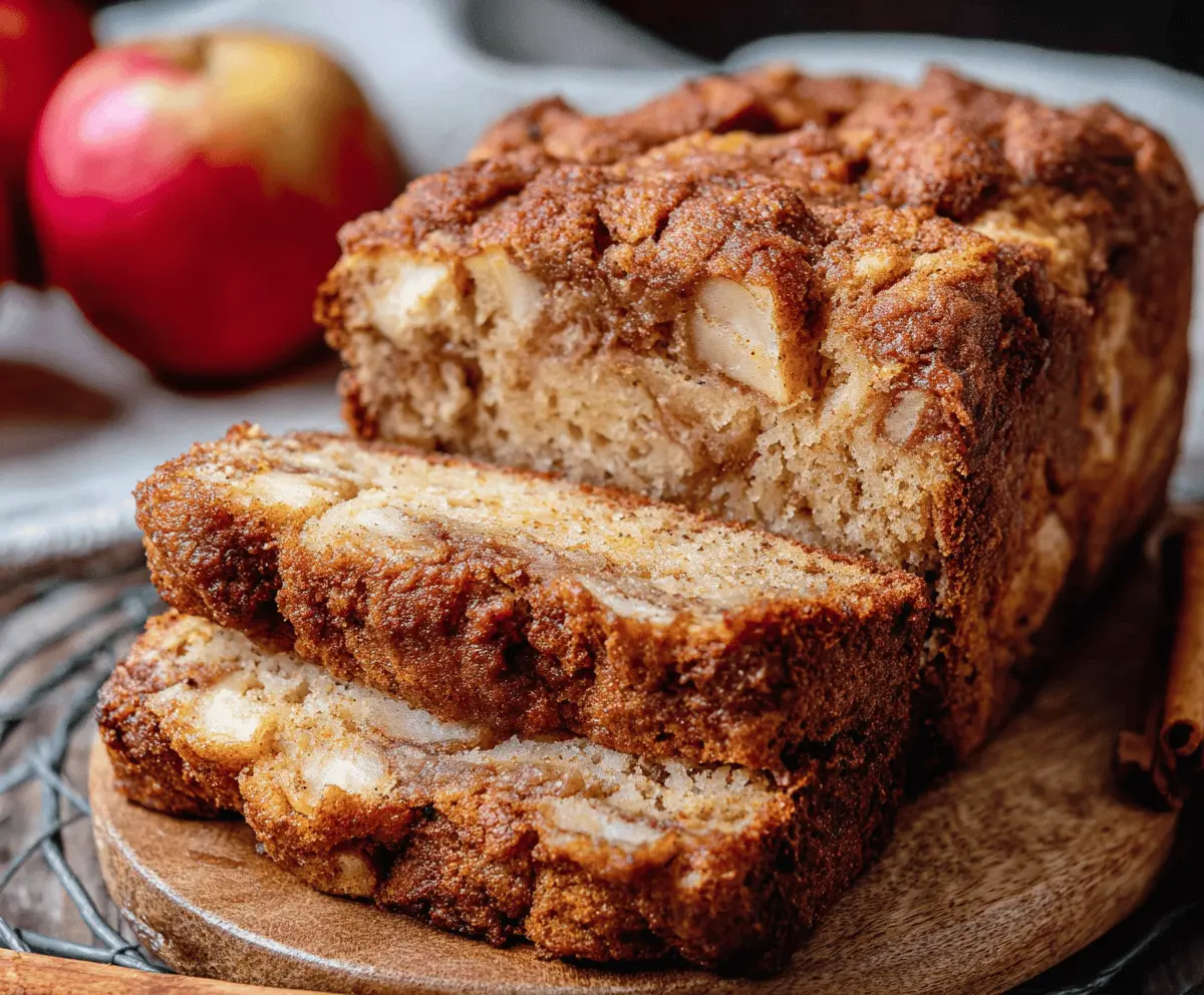 This moist, cinnamon-spiced apple bread with its sweet, crispy crust is perfect for breakfast, snacks, or dessert. Enjoy every slice!