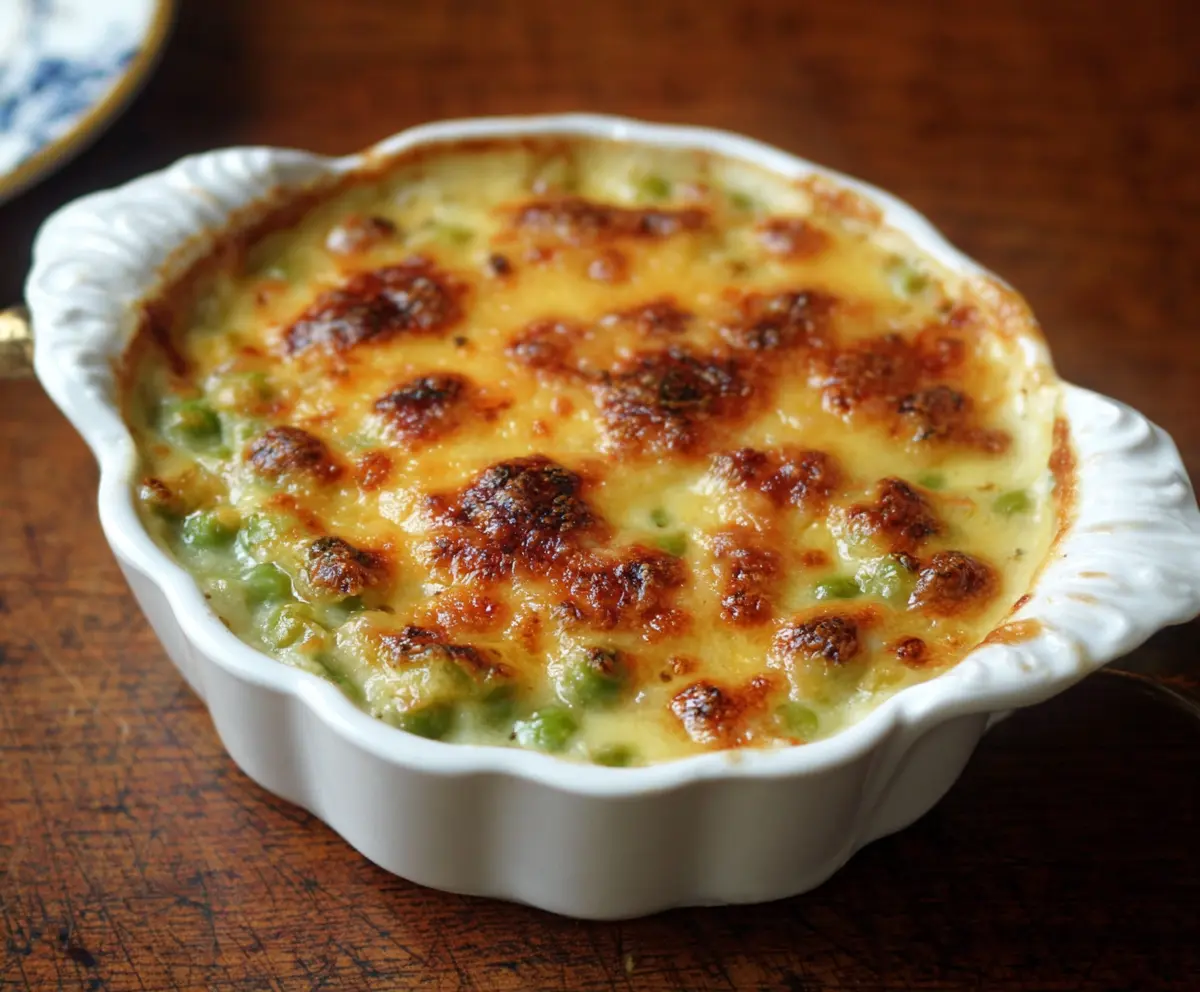 Enjoy your creamy, cheesy Au Gratin Creamed Peas as a delightful side dish that everyone will love!