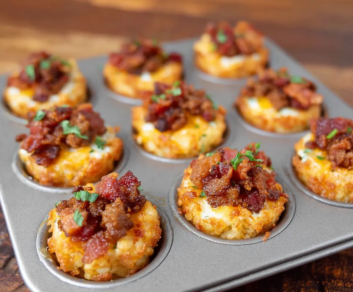 These Bacon Tater Tot Cups are a fun twist on a classic snack! Just imagine crispy tater tots filled with cheesy goodness and yummy bacon. Perfect for parties or game days!