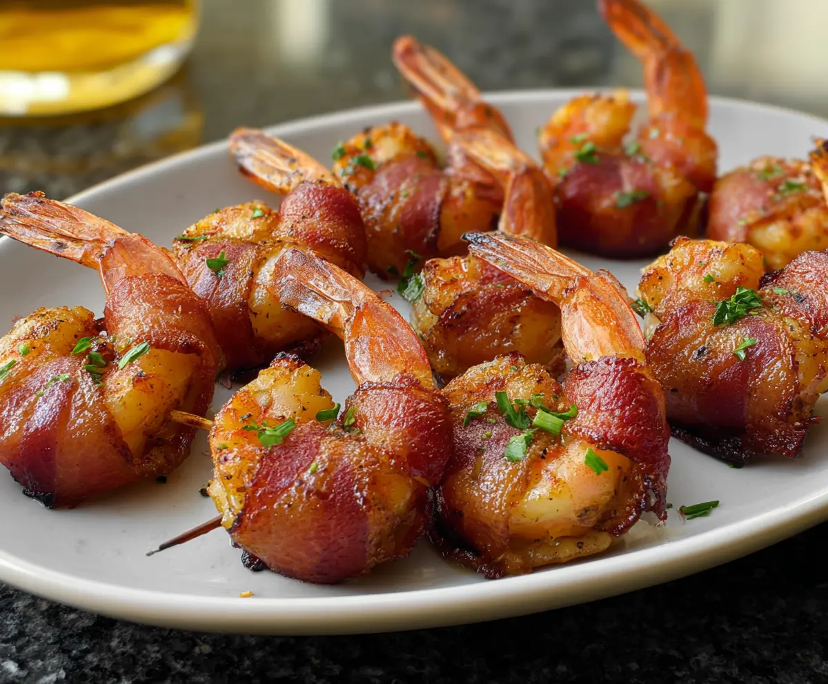 These bacon-wrapped shrimp are a tasty treat that everyone loves! Juicy shrimp are wrapped in crispy bacon and baked to perfection, making them the perfect snack or appetizer.