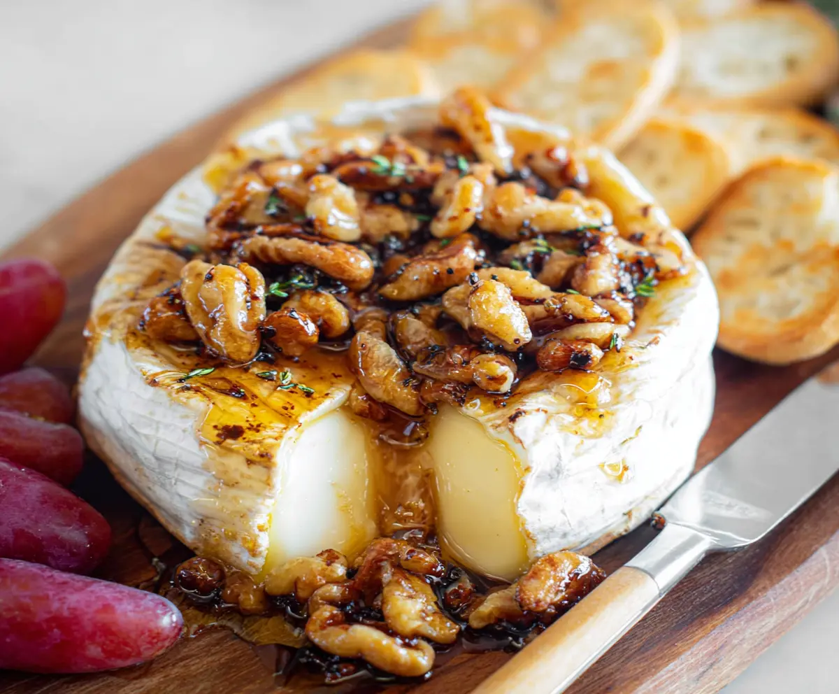 This Baked Brie with Honey and Nuts is a warm, gooey delight that’s perfect for sharing! The cheese melts beautifully, topped with sticky honey and crunchy nuts for a tasty mix.