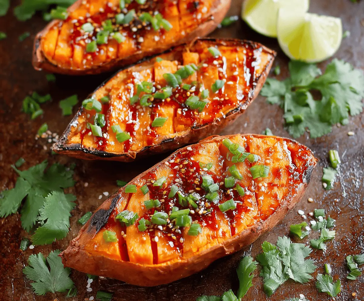 Once baked, take the sweet potatoes out of the oven and let them cool slightly. Then, garnish with topped cilantro, sliced green onions, and a sprinkle of sesame seeds if you’re feeling fancy. A fresh lemon wedge on the side adds a zesty touch!
