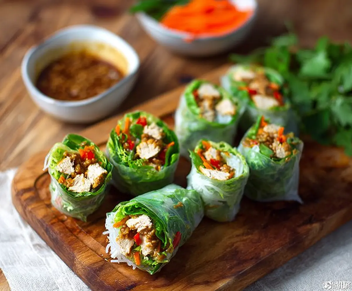 Bang Bang Chicken Rice Paper Rolls are fresh and tasty! They’re filled with tender chicken, crunchy veggies, and a delicious peanut sauce that brings it all together.