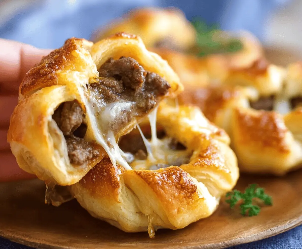 These Beef and Cheese Crescent Ring Bites are a fun and tasty treat! With seasoned ground beef and gooey cheese wrapped in flaky crescent dough, they’re perfect for parties or snacks.