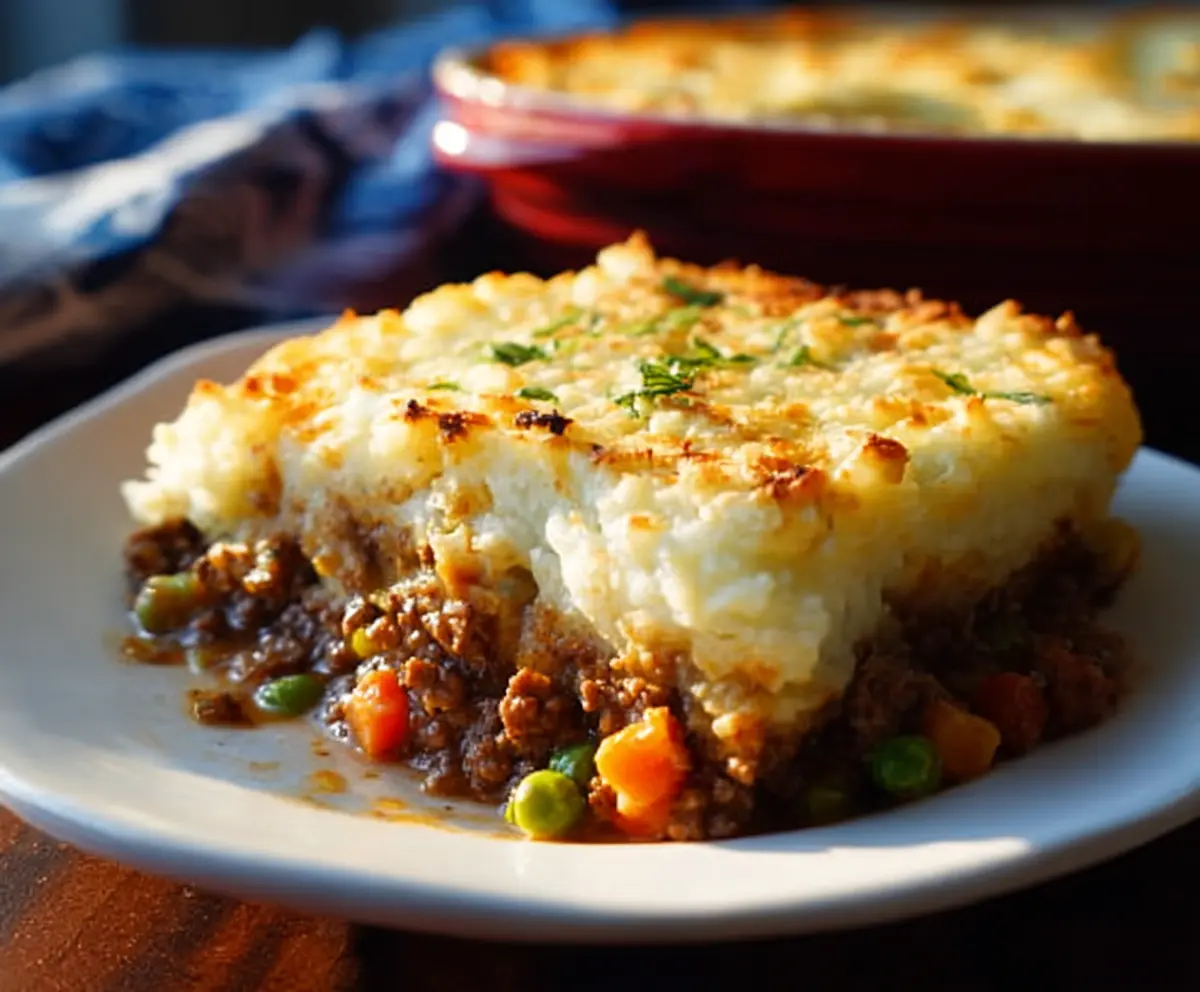 This hearty Beef Shepherd’s Pie is a warm and comforting dish. It features a flavorful mixture of beef, vegetables, and rich gravy, all topped with creamy mashed potatoes.