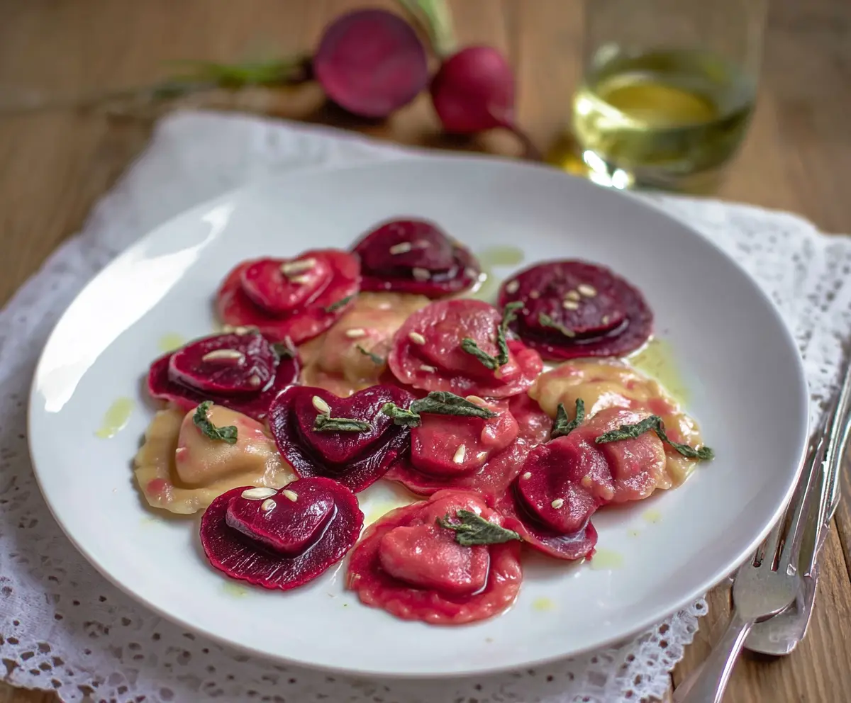 These colorful beet heart ravioli are not just pretty to look at; they’re also filled with delicious goodness! Wrapped in soft pasta, the sweet beet filling steals the spotlight.