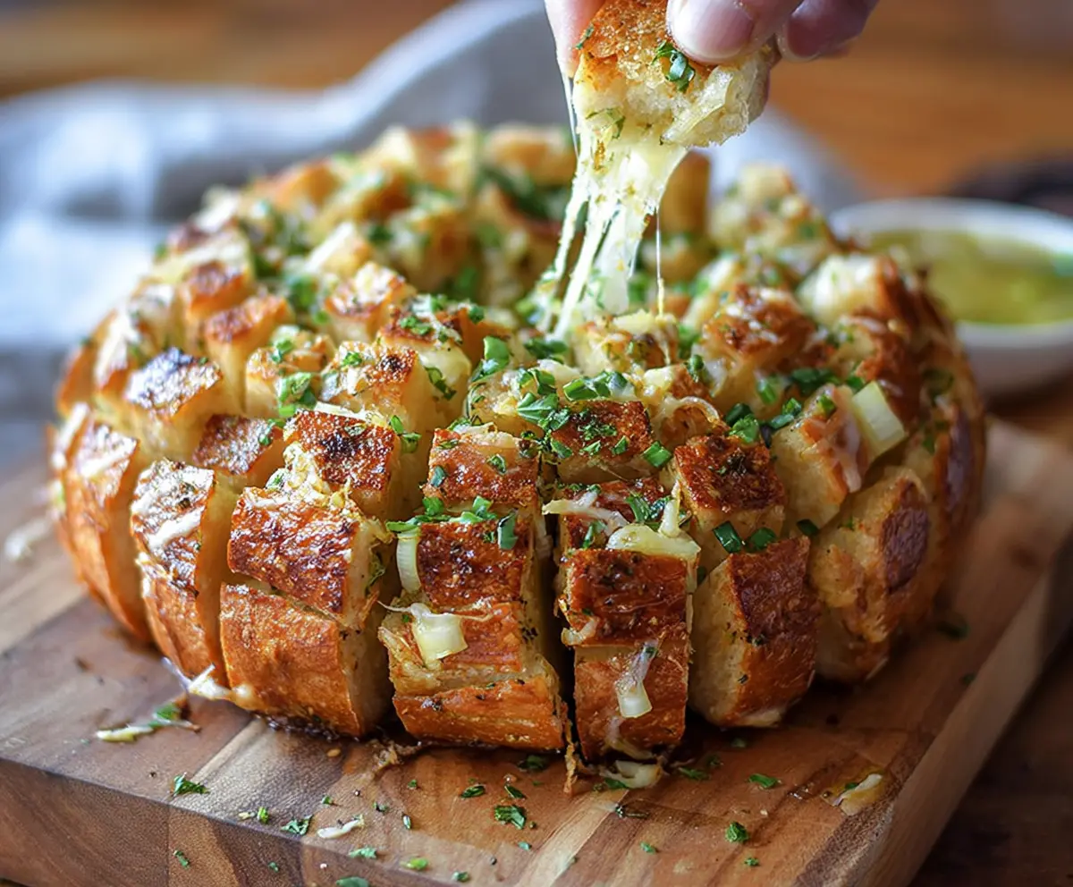 Preparing this delicious pull-apart bread will take you about 15 minutes of prep time. After that, you’ll need about 25-30 minutes in the oven—just enough time for it to become gooey and golden. You’ll have a tasty snack or appetizer ready in no time!