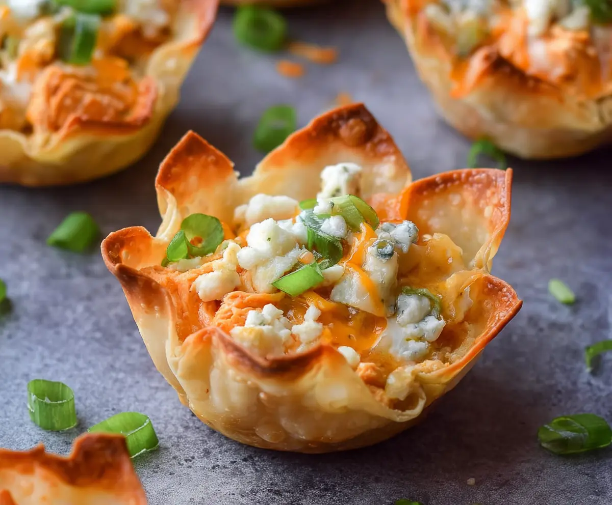 Buffalo Chicken Wonton Cups