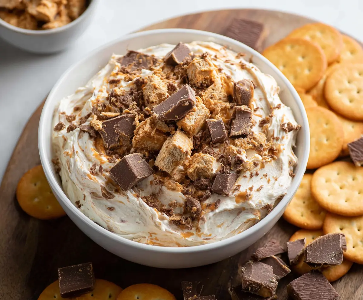 This Butterfinger Dip is a sweet treat that’s fun and easy to make! It blends creamy cheese and crushed Butterfinger candy for a tasty dessert dip. Perfect for parties!