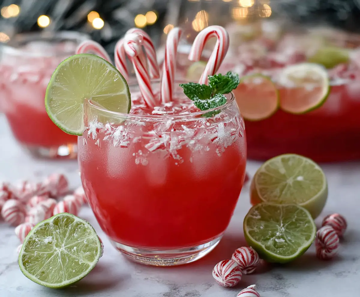 Sprinkle some crushed candy canes on top for a sweet crunch and add a lime slice on the rim of each glass. This little touch makes it look extra special!