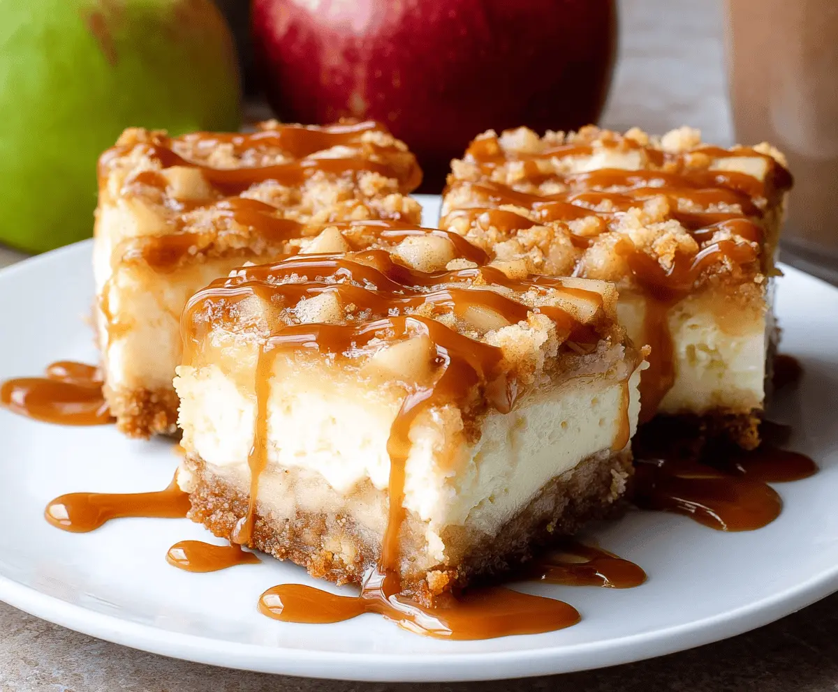 When ready to serve, cut the cheesecake into squares. Drizzle caramel sauce generously over each bar for that extra touch of sweetness. Enjoy your Caramel Apple Cheesecake Bars chilled and delight in the creamy, fruity goodness!