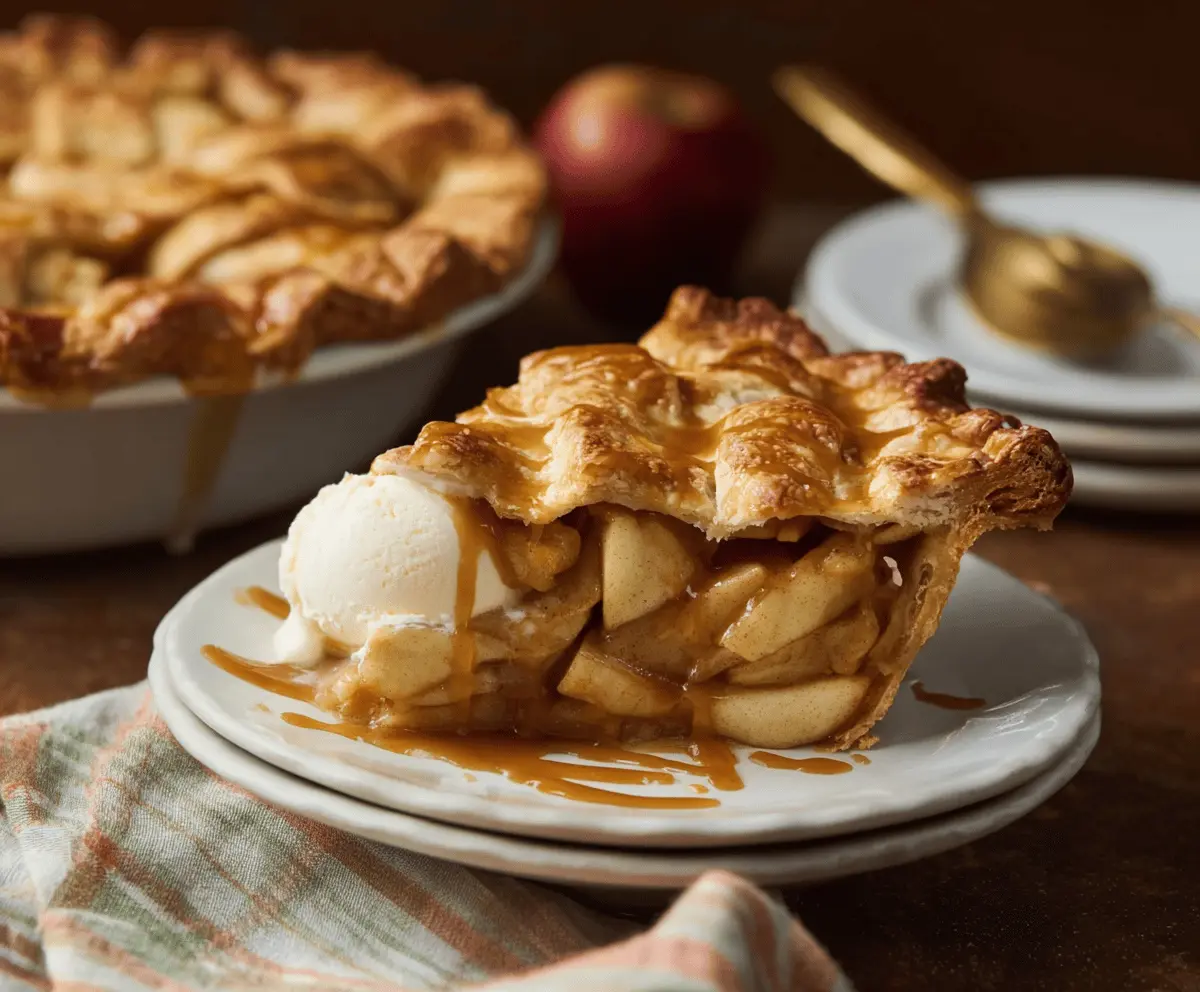 Remove the pie from the oven and allow it to cool on a wire rack for at least 2 hours, which helps the filling set. Serve your Caramel Apple Pie warm or at room temperature, optionally topped with vanilla ice cream or whipped cream.