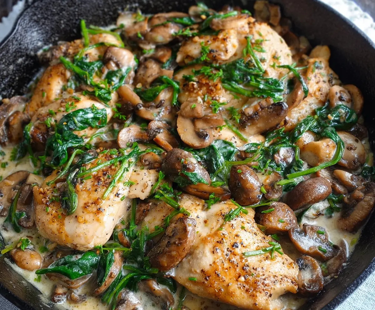 This Chicken Mushroom Spinach Skillet is a delicious one-pan meal that’s quick and easy! With tender chicken, earthy mushrooms, and fresh spinach, it’s a healthy choice for dinner.