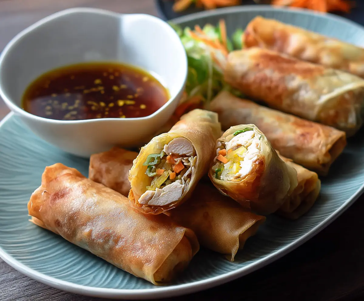 These chicken spring rolls are sure to be a hit – crispy on the outside and bursting with savory filling! Enjoy your cooking adventure!