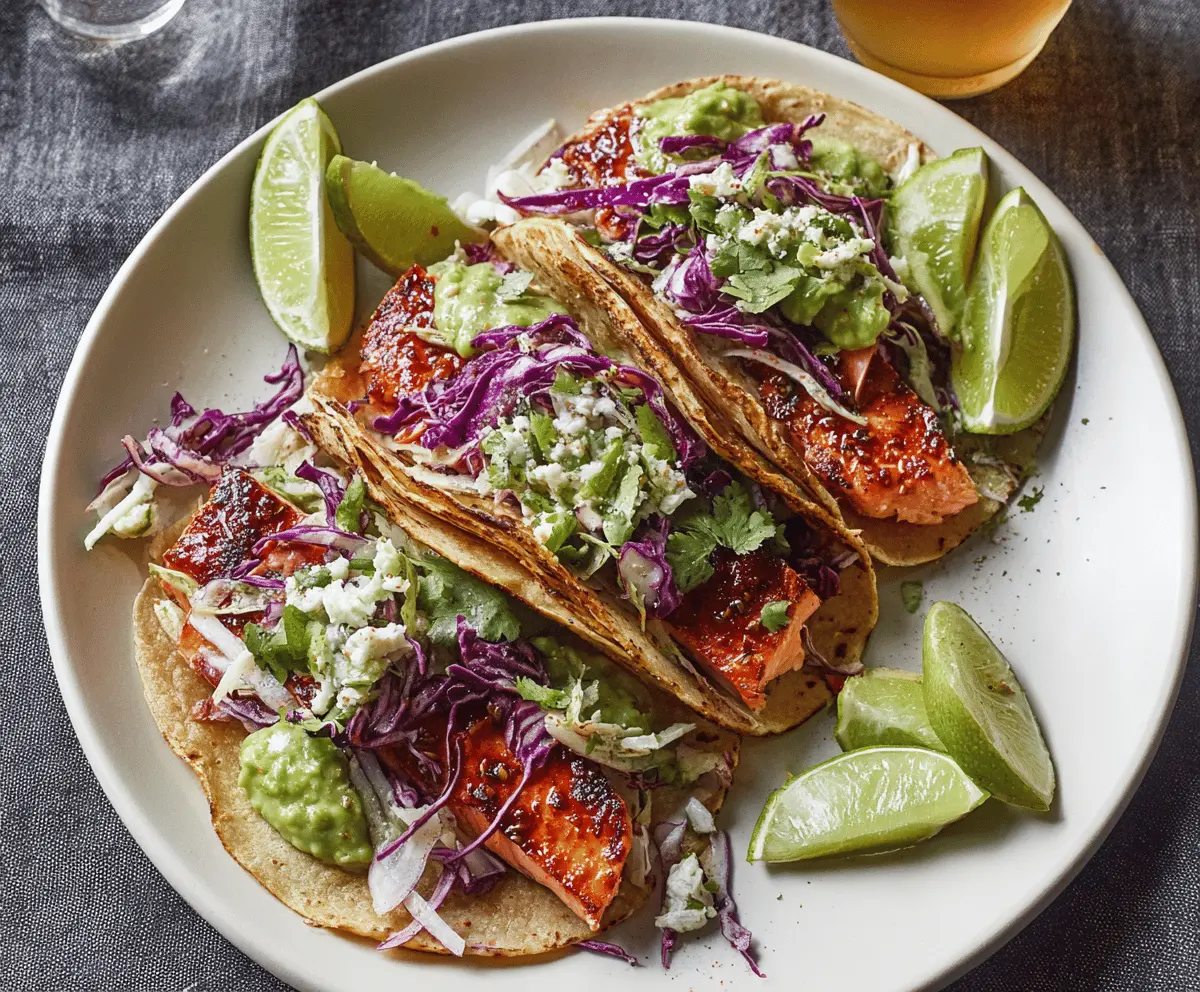 Garnish your tacos with lime wedges for an extra burst of flavor. Serve immediately and enjoy the vibrant and zesty flavors of these Chile Lime Salmon Tacos!