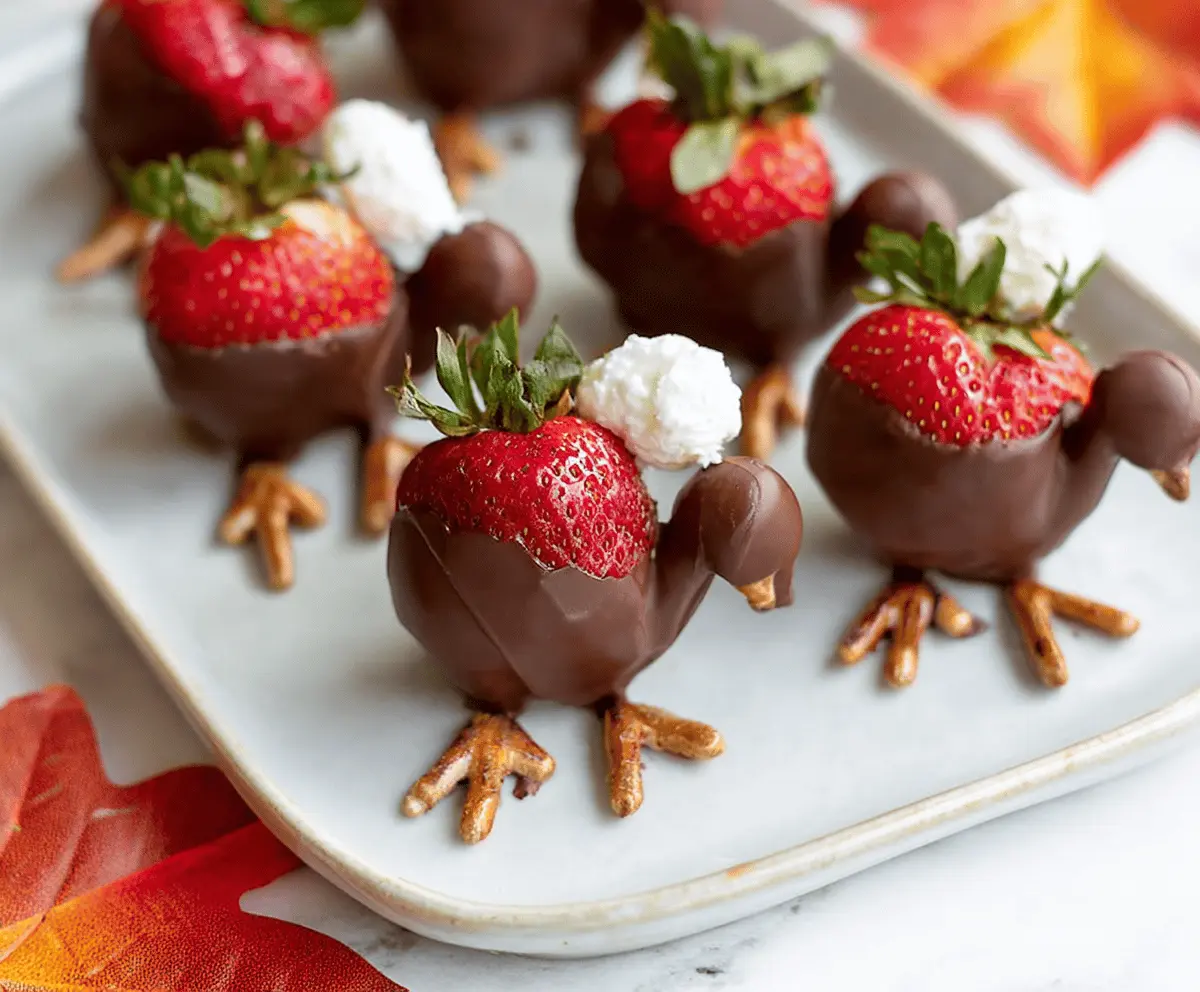 Once everything is set, carefully transfer your Chocolate Covered Strawberry Turkeys to a serving plate. These charming treats are sure to bring smiles during your Thanksgiving festivities or any fun gathering!