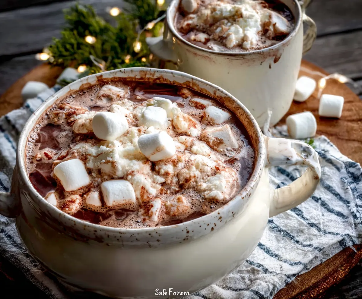 Enjoy a cozy Christmas Eve with this rich, creamy crockpot hot chocolate—perfect for sharing with family and friends by the fireside!