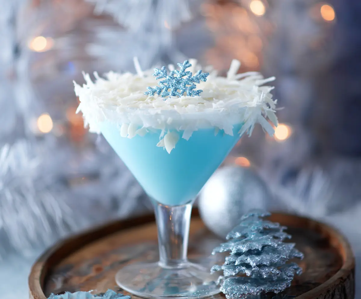 To finish, place an edible snowflake decoration or a white candy snowflake on top for that magical holiday touch. It’s the perfect finishing detail for this delightful cocktail.