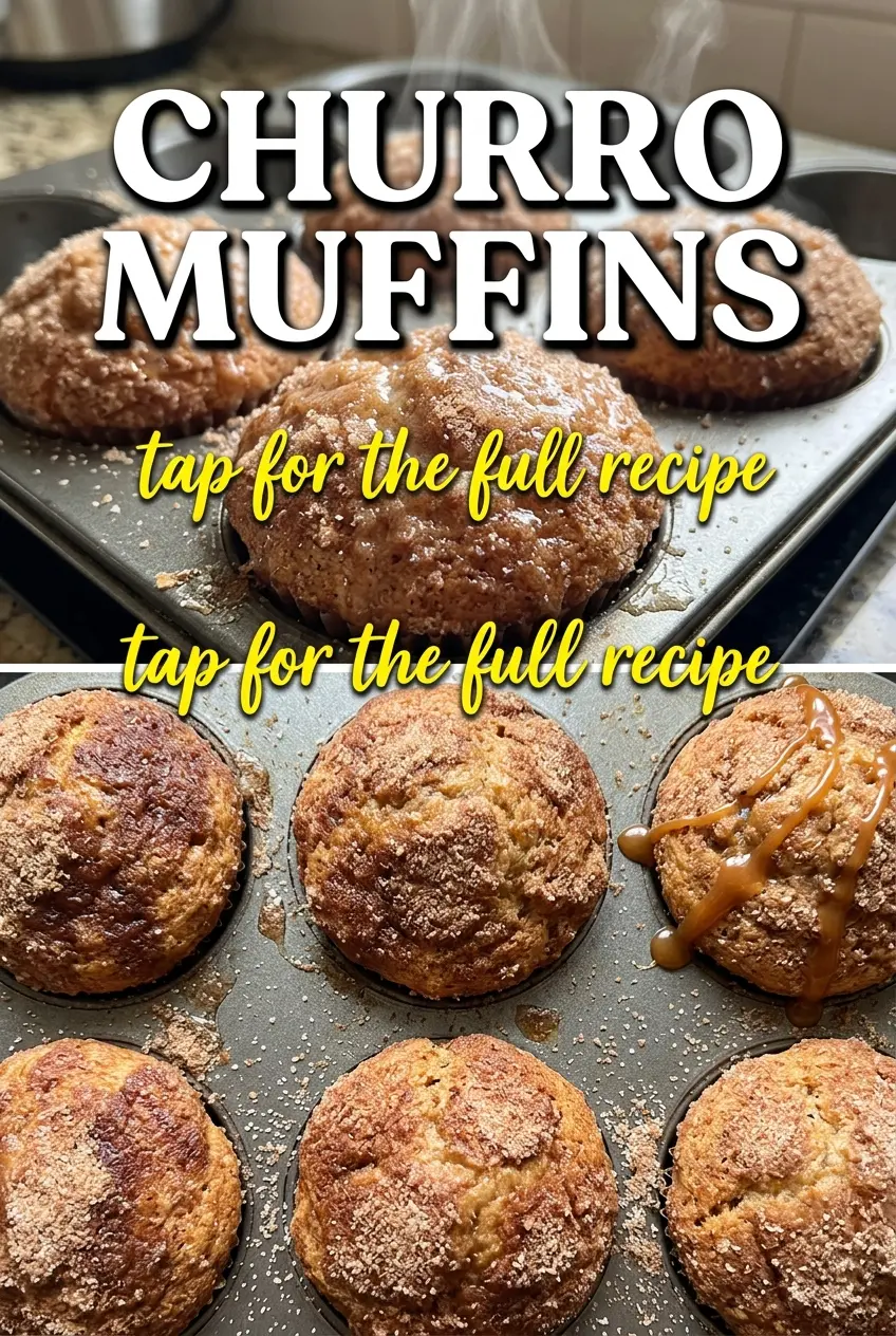 Golden muffin tops, a soft vanilla crumb, and that sparkling cinnamon-sugar shell make these churro muffins the kind of bake people reach for before they’ve even fully cooled. The dulce de leche tucked into the center gives each one a little pocket of caramel richness, so you get the churro idea without frying a thing.