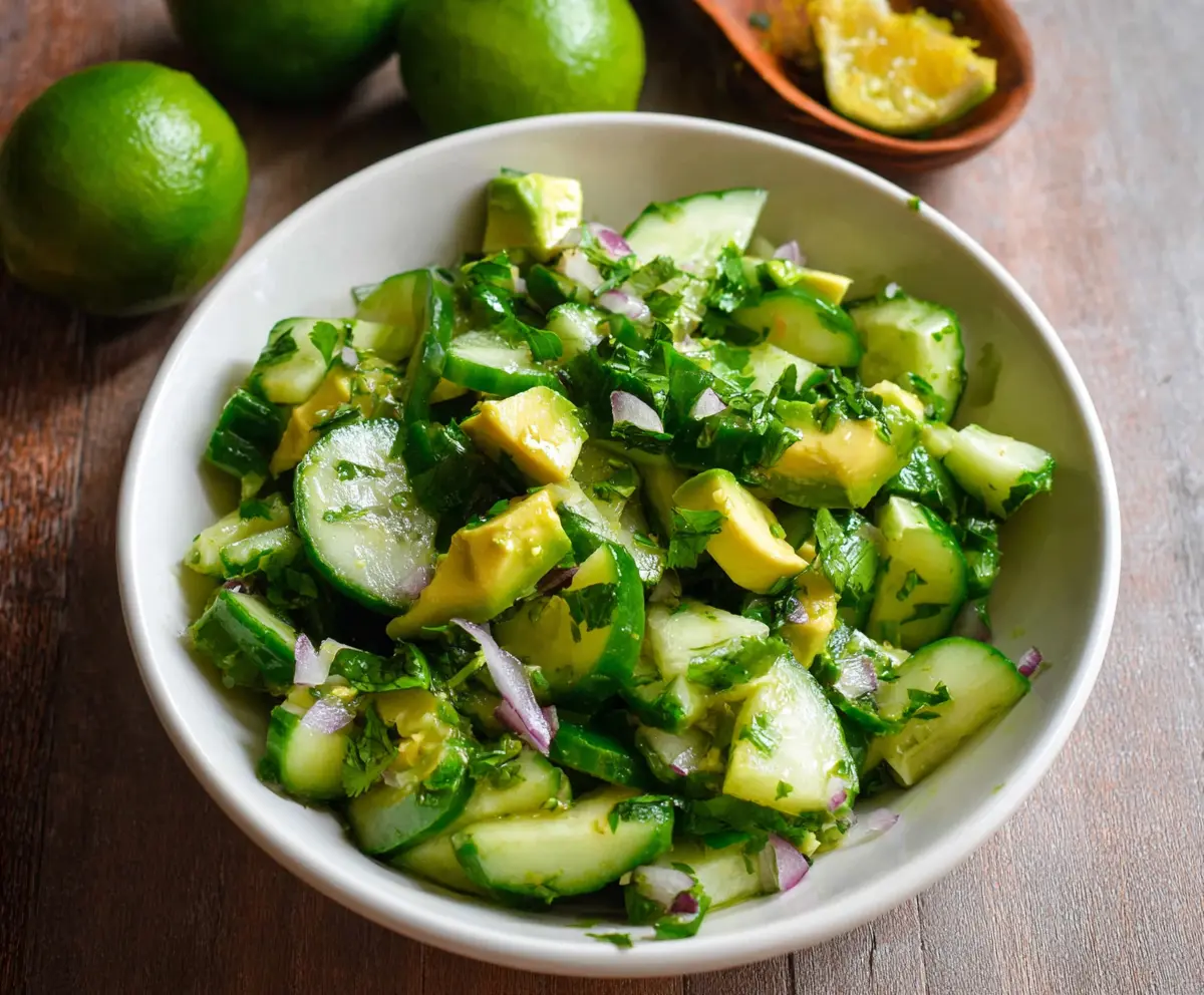 This refreshing cilantro lime cucumber salad is perfect for warm days! With crunchy cucumbers, creamy avocado, and zesty lime, it’s a bright and tasty side.