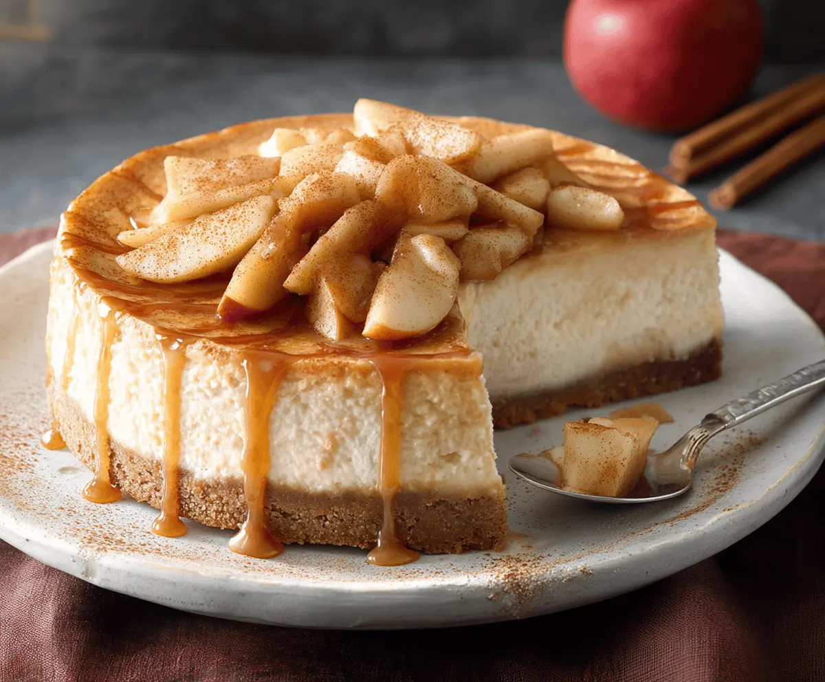 There you have it—a creamy, rich cheesecake with a buttery graham crust, topped with luscious cinnamon-spiced apples. Perfect for celebrations or a cozy night in!