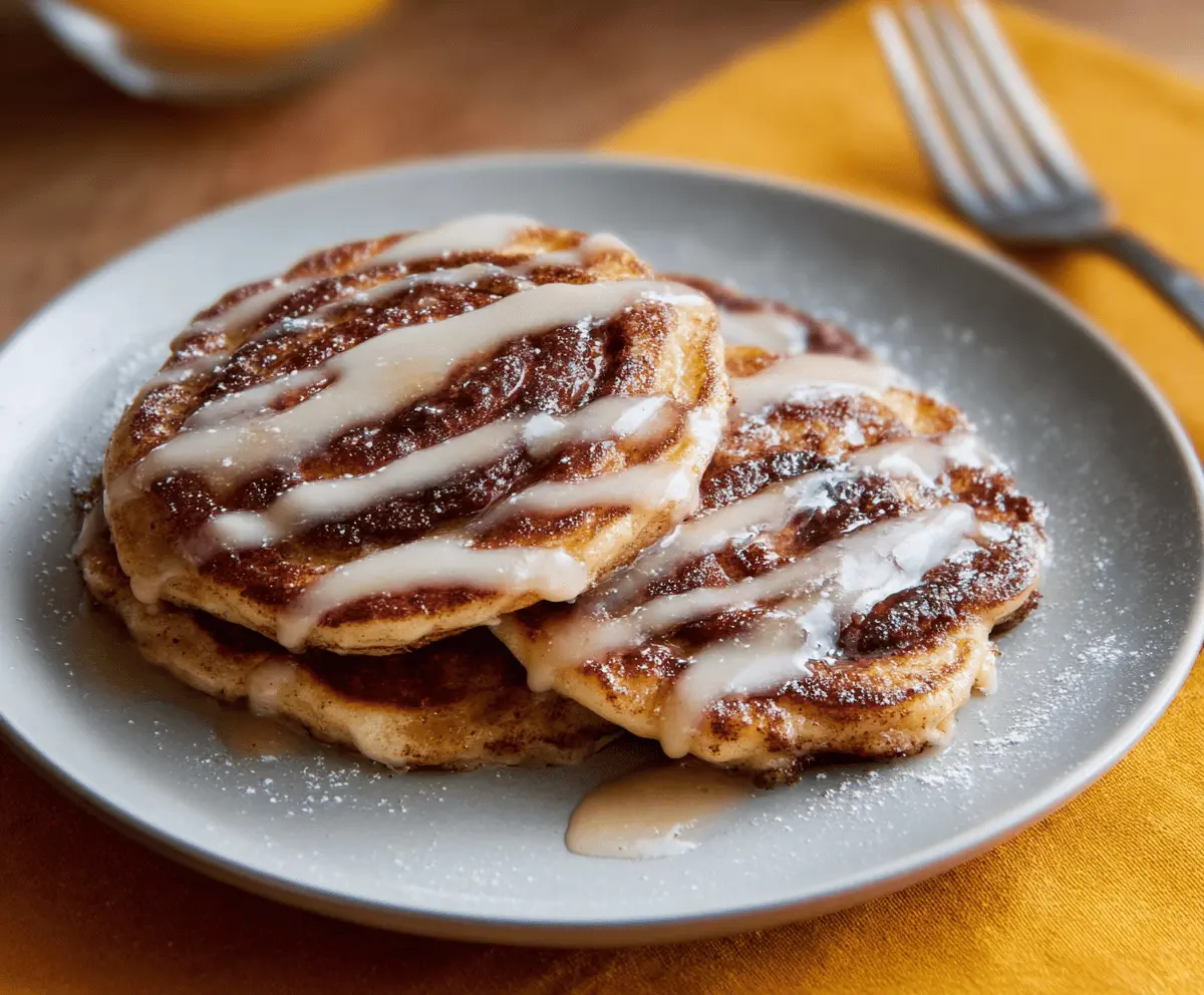 Stack your pancakes high on plates and finish with a dusting of powdered sugar. Drizzle with icing or maple syrup for extra sweetness, and add some fresh fruit if you’d like. Enjoy every warm, fluffy bite of your cinnamon swirl pancakes!