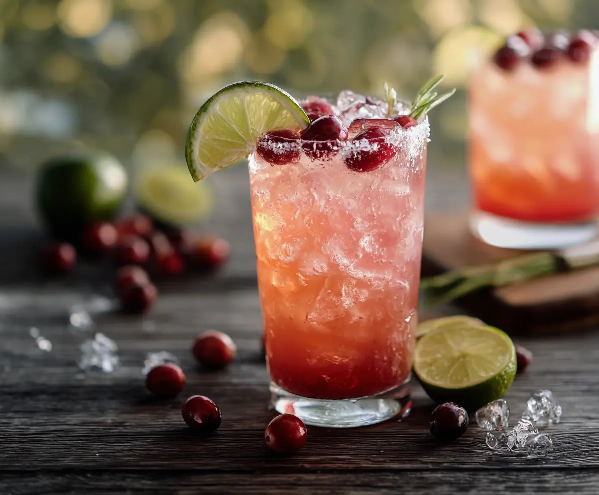 To make it look pretty and extra special, garnish your drink with a lime wheel on the rim and scatter some fresh cranberries on top. It adds a festive touch!
