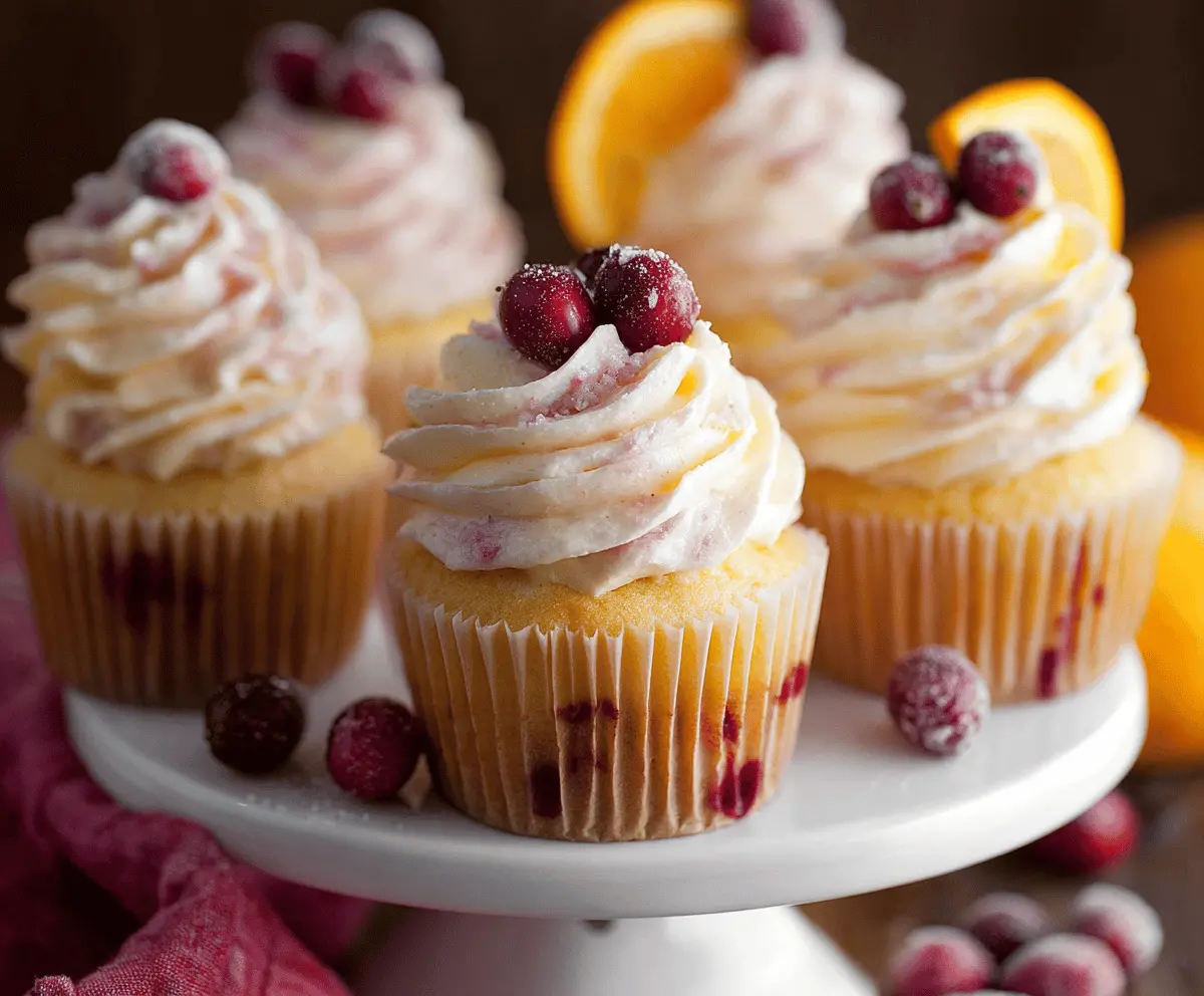 To make them extra special, garnish each cupcake with two fresh cranberries and a tiny orange wedge on top. You can also dust the cranberries with granulated sugar for a sparkling touch if you wish!