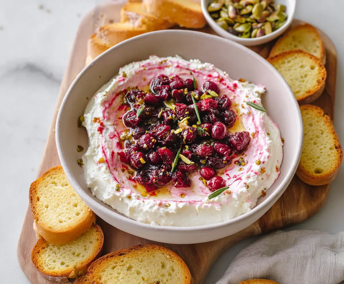 This recipe highlights the creamy texture of whipped feta balanced beautifully with the sweet-tart cranberry topping and the delightful crunch of pumpkin seeds. Enjoy every bite!