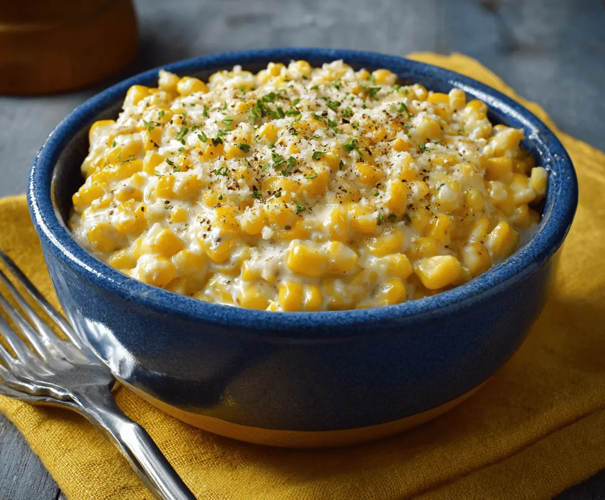 Transfer the delightful creamed corn to a serving bowl. Garnish with chopped fresh parsley or chives, and if you like, a sprinkle of black pepper on top. Serve warm as a comforting and delicious side dish.