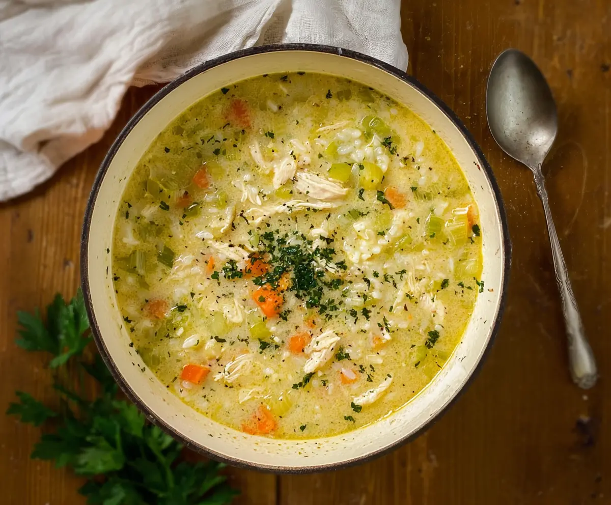 This comforting creamy soup is a warm hug in a bowl! With tender chicken, sweet leeks, and fluffy rice, it’s perfect for chilly days.