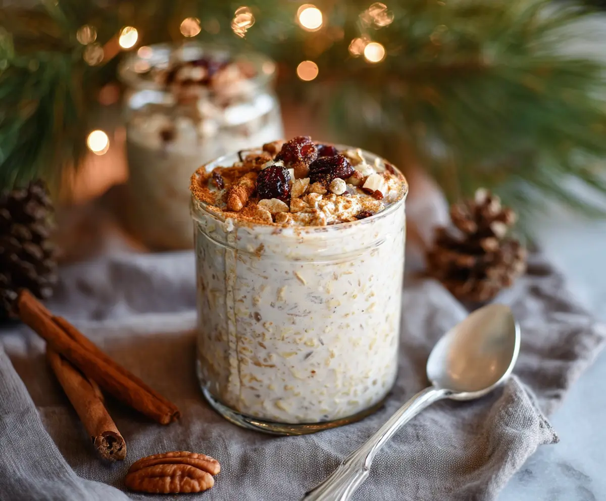 Eggnog Overnight Oats are a fun and tasty breakfast! Made with creamy yogurt, oats, and that special eggnog flavor, it’s perfect for the holiday season.