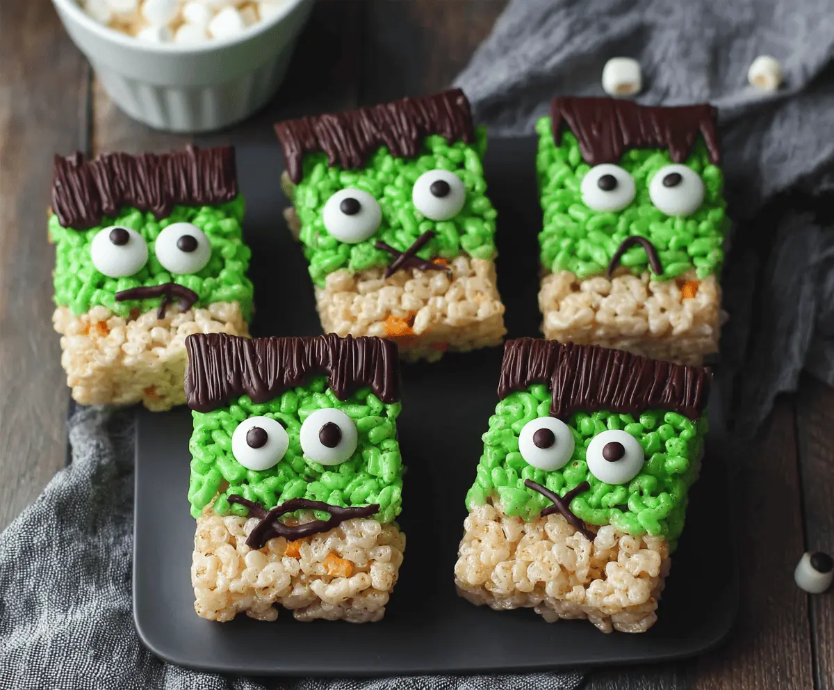 These spooky Frankenstein Rice Krispie Treats are a fun and tasty twist on the classic snack! Made with gooey marshmallows and crispy rice cereal, they’re perfect for Halloween.