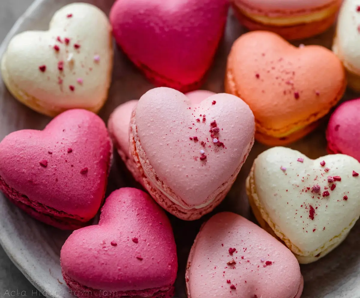 These adorable heart-shaped macarons are as cute as they are delicious! With a crispy shell and a soft, chewy inside, they are perfect for any sweet occasion.