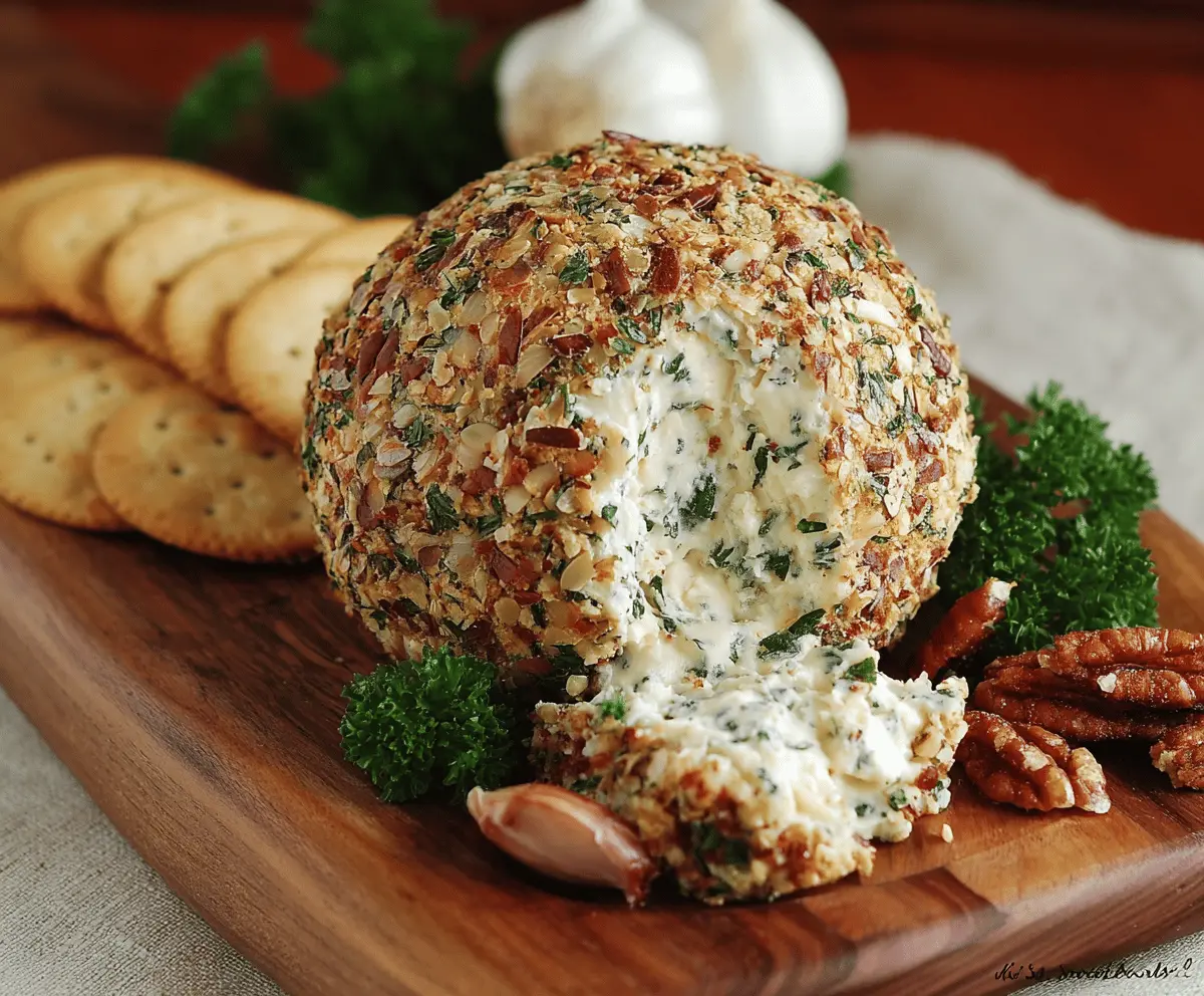 Enjoy this creamy, flavorful herb and garlic cheese ball as a perfect appetizer for gatherings!