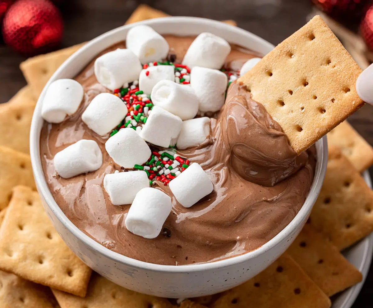 Now, scoop your delicious dip with graham crackers or cookie squares. Enjoy this creamy, chocolatey treat that’s perfect for sharing with friends and family during winter gatherings!