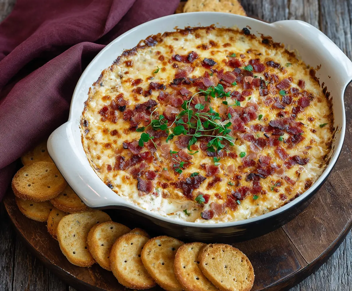 You can’t go wrong with cheese and bacon, right? I love to serve it with crackers or fresh veggies. Trust me, it disappears quickly—it’s that good! 😋