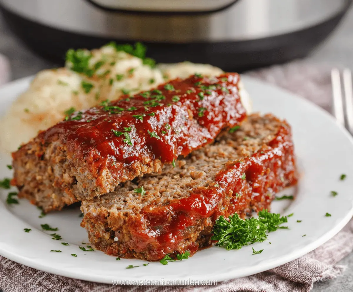 Enjoy your tender, flavorful Instant Pot meatloaf with creamy mashed potatoes! This combination makes for a classic comfort meal that’s quick and easy to prepare.