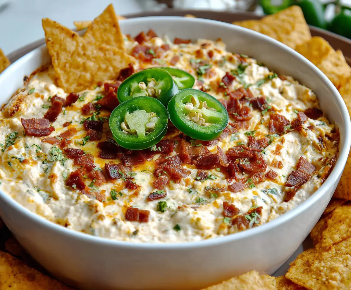 This warm and cheesy jalapeño popper dip is packed with flavor! With cream cheese, spicy jalapeños, and crispy bacon, it’s a party favorite everyone loves.