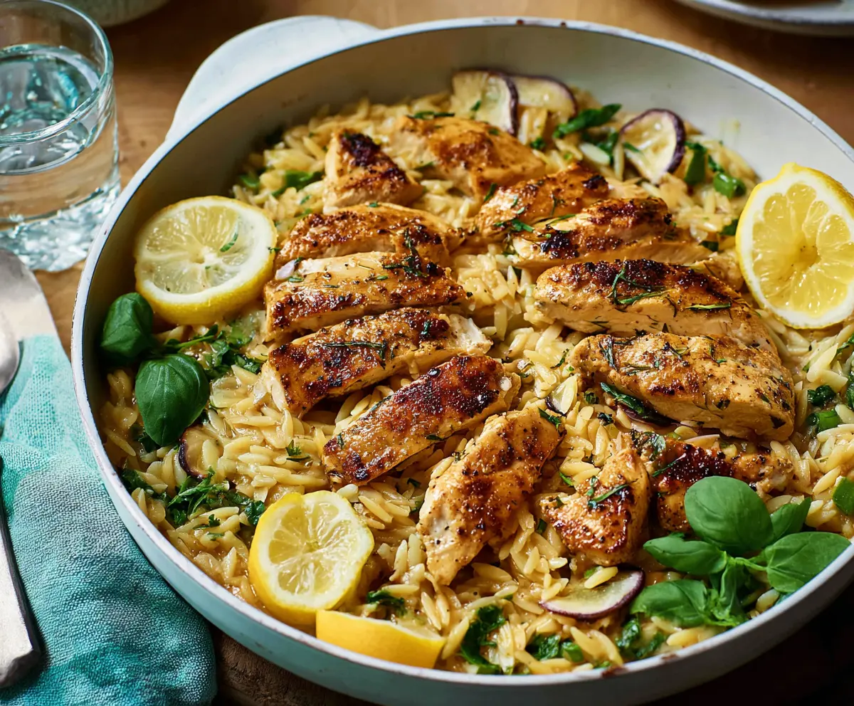 Lemon Chicken and Orzo is a bright and tasty dish! Juicy chicken and tender orzo pasta come together with zesty lemon and fresh herbs for a delightful meal that’s easy to make.
