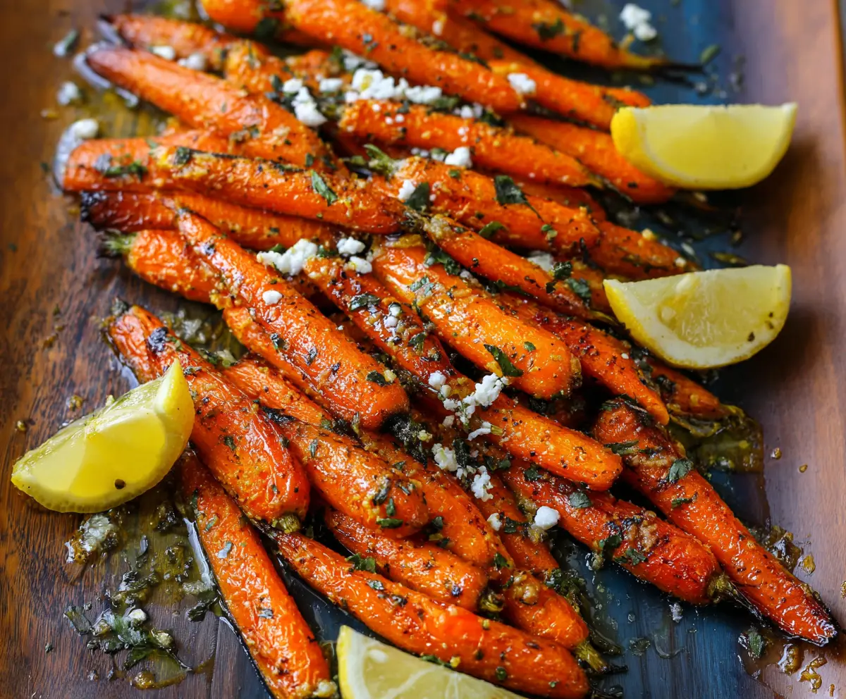 Once the carrots are roasted, take them out of the oven and transfer them to a serving platter. If you’d like, sprinkle crumbled feta cheese over the top and garnish with fresh parsley for a pop of color. Don’t forget to serve with lemon wedges on the side for that extra burst of flavor.
