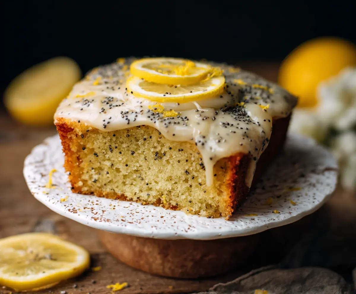 Sprinkle extra poppy seeds on top of the glaze and add lemon slices as a garnish for a lovely finish. Let the glaze set for a bit before slicing into your delicious cake.