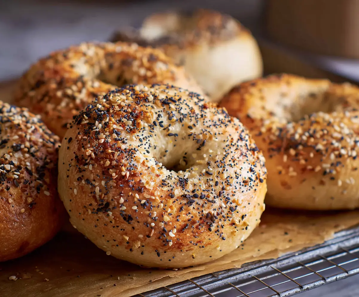 - Optional toppings: sesame seeds, poppy seeds, minced garlic, dried onion flakes, or “everything bagel” spice mix