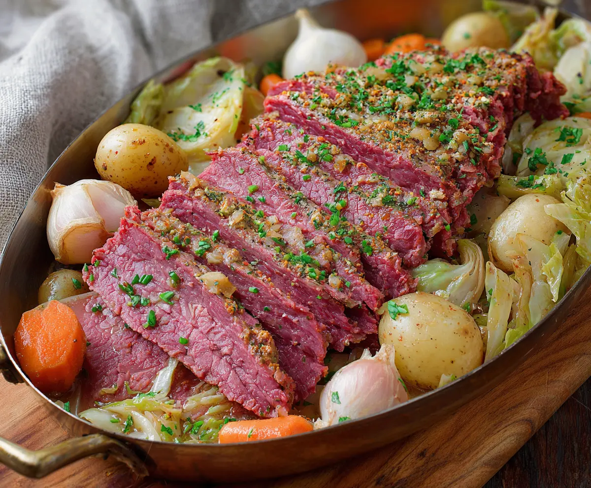 This dish features tender, juicy corned beef paired with soft cabbage. Oven roasting gives it a wonderful flavor that will warm your heart and kitchen!