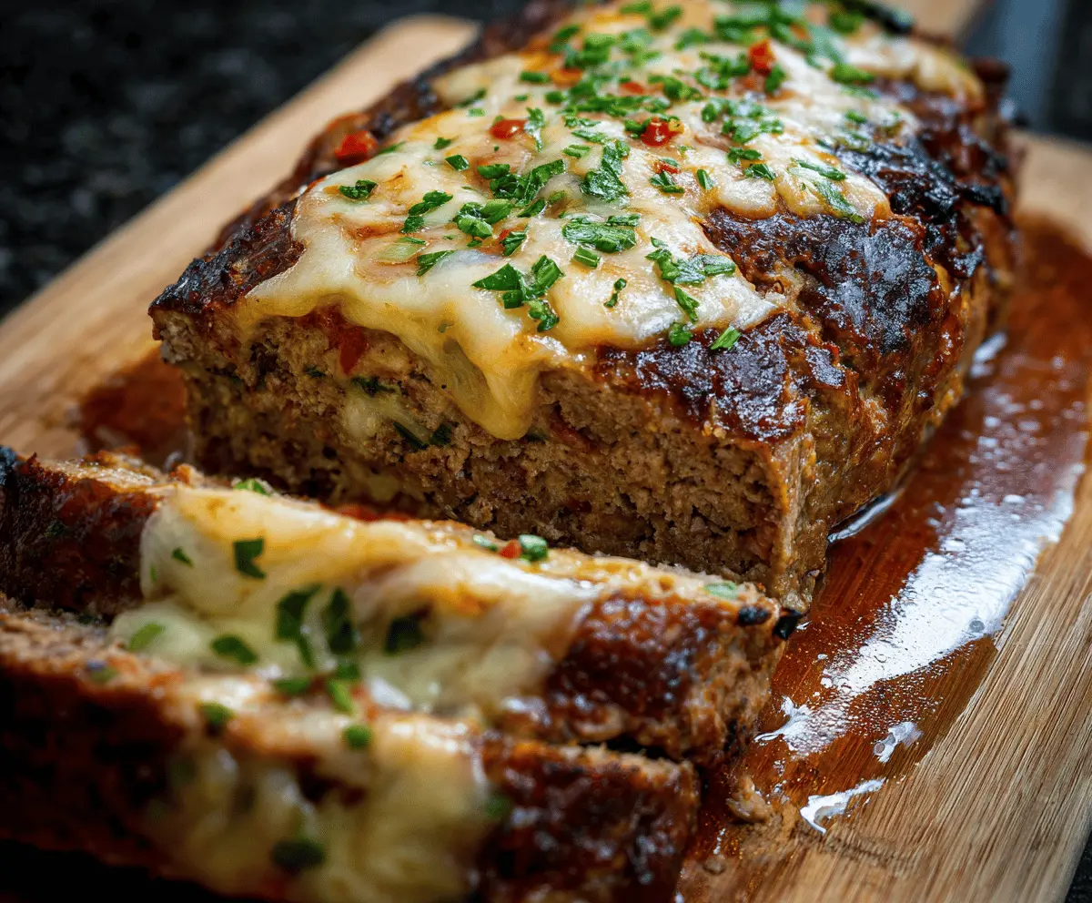 Slice the meatloaf, garnish it with fresh chopped parsley, and serve it warm. It pairs wonderfully with mashed potatoes or a fresh green salad. Enjoy your hearty, melty Philly Cheesesteak Meatloaf!
