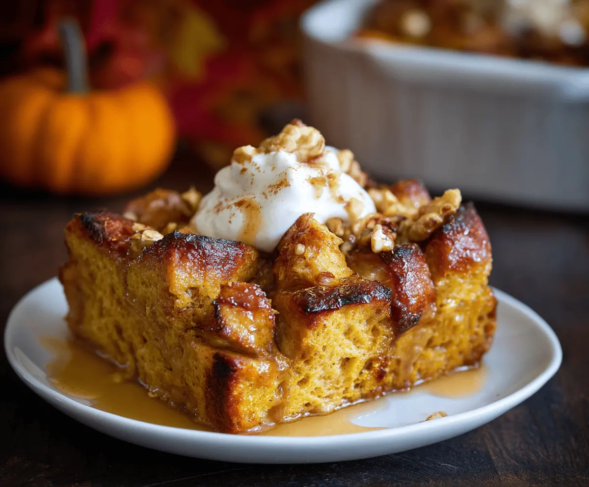 Enjoy this richly flavored and comforting pumpkin bread pudding, perfect for any fall occasion or simply when you want to indulge a little!