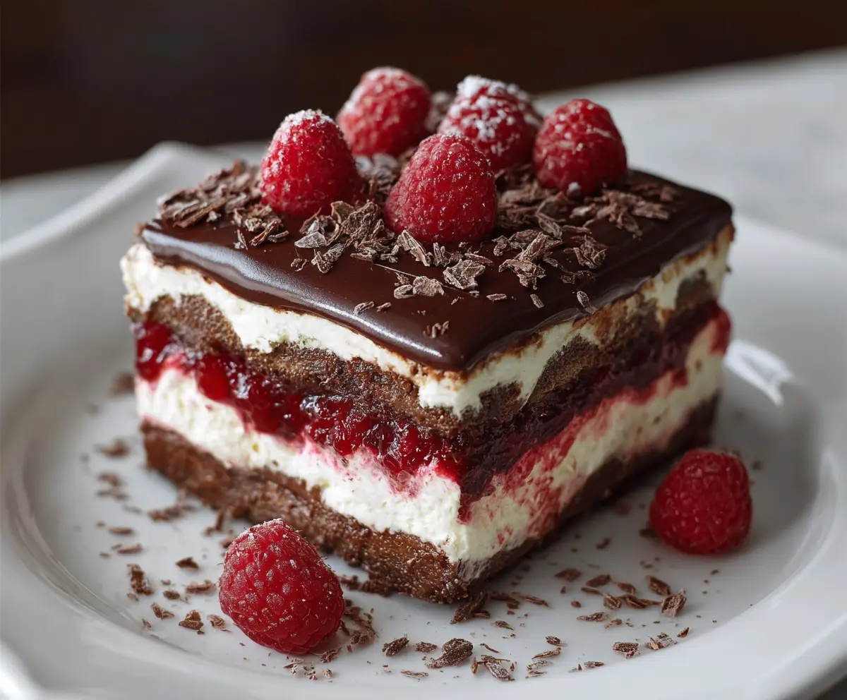 Enjoy the creamy layers of chocolate cake, rich cream, fresh raspberries, and luscious ganache in every bite of this elegant Raspberry Chocolate Lasagna!