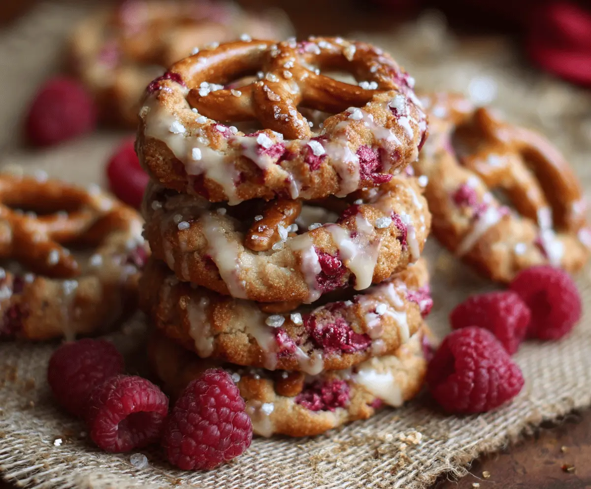 Once they’re cooled, grab a cookie (or two!) and enjoy the delightful mix of sweet raspberry, buttery cookie, and crunchy pretzel. Perfect for any occasion!