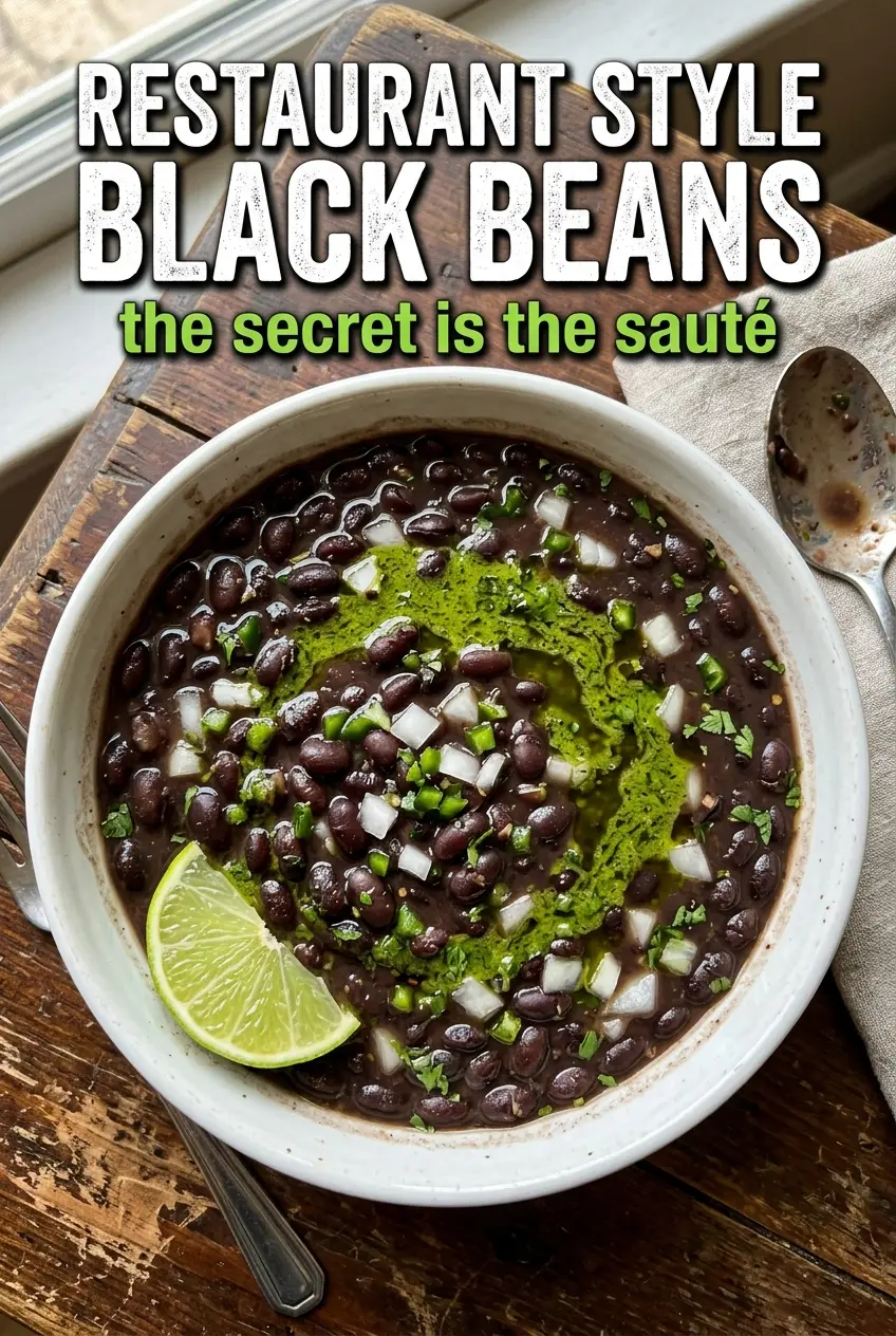 These restaurant style black beans come out glossy, creamy, and full of that slow-simmered flavor you usually only get when beans have been hanging out on the stove all afternoon. The texture is the whole point here: some beans stay intact, some break down just enough to thicken the pot, and the broth turns into a savory sauce that clings instead of pooling at the bottom of the bowl.