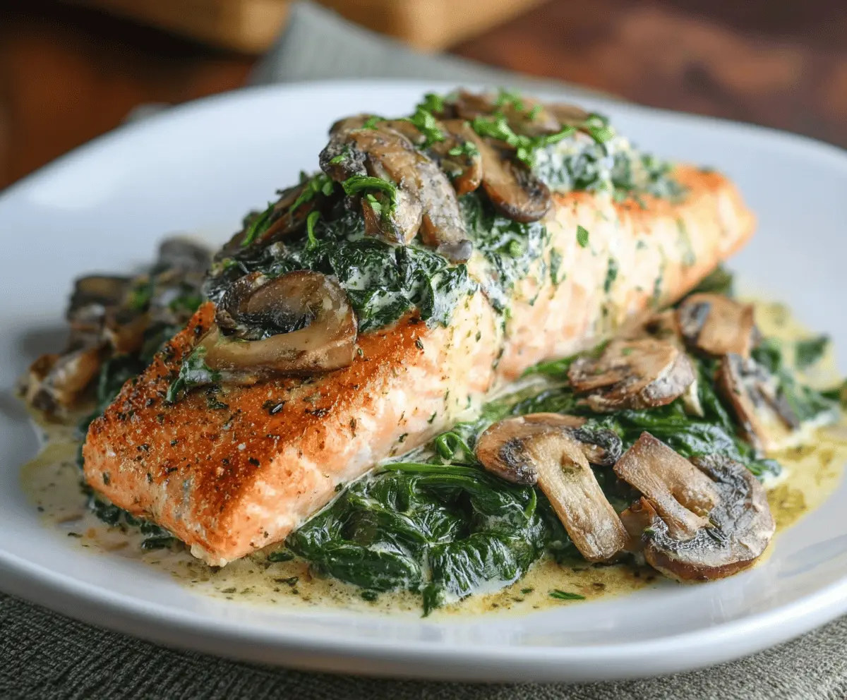 This Salmon Florentine is a tasty blend of juicy salmon, fresh spinach, and soft mushrooms. It’s colorful, healthy, and perfect for a quick dinner!